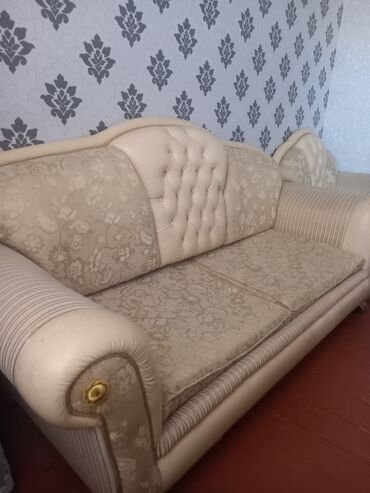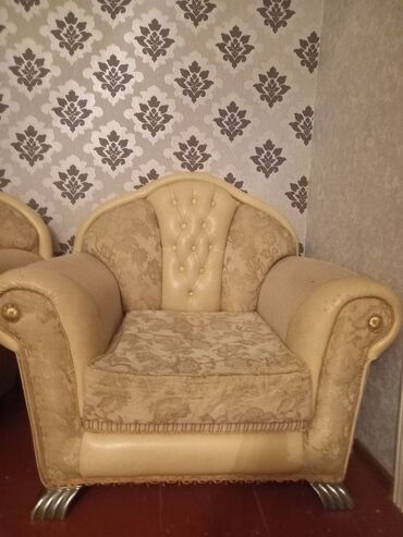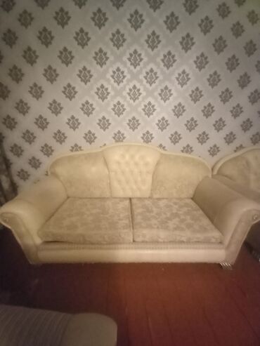 Klassik üslubda mebel dəsti hamısı cemi 100azn təcili satılır - Tərkib: 1 ədəd üçnəfərlik divan + 2 ədəd kreslo - Rəng: krem/bej tonları - Üslub: klassik, dekorativ kapitone (püsküllü düyməli) arxa...