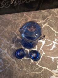 Mavi kobalt şüşədən hazırlanmış dekorativ içki dəsti. - Tərkib: 1