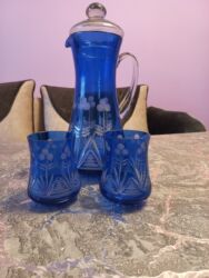 Kobalt-mavi şüşədən hazırlanmış bədii qrafin-servis dəsti. Tərkib: -
