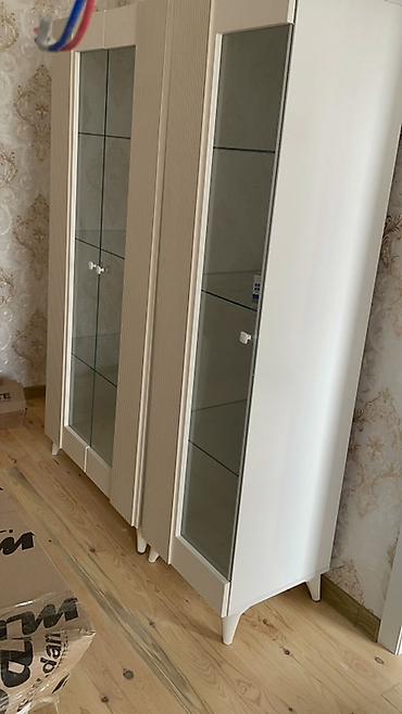 1) Şüşə vitrin şkafı – iki ədəd. Ön tərəfi şəffaf temperli şüşə qapılarla, içəridə şüşə rəflər. Dekorativ əşyalar, qab-qacaq və kolleksiyaların nümayişi üçün uyğundur.