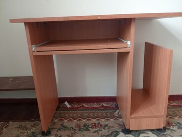 Kompyuter/iş masası – ağac teksturasında, laminat örtüklü. Xüsusiyyətlər: - Üst stolüstü səthdə geniş iş sahəsi - Klaviatura üçün sürgülü rəf - Sağ tərəfdə qapılı bölmə və üstündə kiçik çekmece - ...