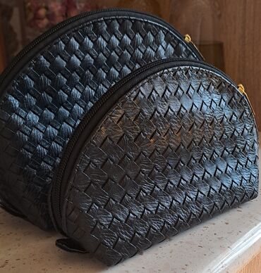 Qara dəri əl çantası - Material: teksturalı qara dəri (sərt formaya malik) - Dizayn: üst tutacaq və uzun tənzimlənən/kənardan çıxarıla bilən çiyin kəməri - Kəmər: eni geniş, toxuma naxışlı parça k...