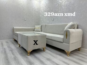 Künc divan dəsti - Model: L formalı künc divan, müasir klassik dizayn - Ölçü: standart künc ölçülü (fotolardakı kimi L istiqaməti dəyişdirilə bilər) - Material: yumşaq parça/velur tipli üzlük, dek...