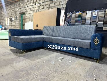 Künc divan – 300₼ - Açılan, bazalı model: həm oturma, həm də yatmaq üçün rahatdır; bazası əlavə əşyaların saxlanması üçün yararlıdır. - Ölçü: 240 x 150 sm. - Rəng: tünd mavi/ətirli göy tonlarda, d...