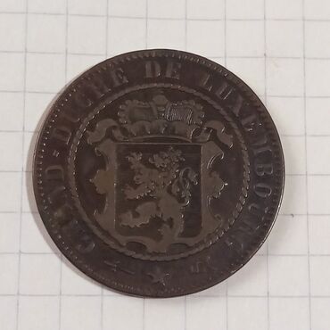 - Kolleksiyaçılar üçün XIX əsr Lüksemburq numizmatikası nümunəsi; nominal, il və gerb detalları aydın oxunur.