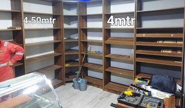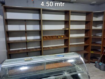 Magaza Vitrin polkalari satilir 36 metr divar vitrini var elde, 14 metrese polsa istehsali 40sm polkalidir, qalani 30 sm polka ile