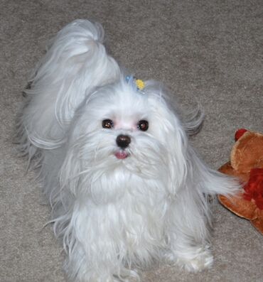 Balaca, tüklü ev iti balası - Cins tipi: kiçik ölçülü, uzun və dalğalı ağ tüklü (oyuncaq tipli dekorativ it kateqoriyasına uyğun) - Rəng: əsasən ağ, qulaq və pəncə hissələrində açıq bej tonları - X...