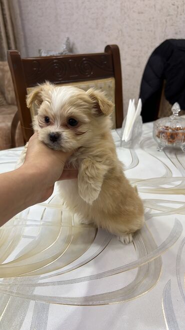 Ana atasının Seklı var 1aylıq erkek bala Miniatür it balası – yığcam ölçü, uzun və yumşaq şaftalı rəngli tüklər, ağ alın-qarın bölgəsi. Qısa pəncələr, yuvarlaq sifət, qara burun və parlaq qəhvəyi gözlər. Ev şəraitinə uyğun, az yer tutur və asanlıqla qucaqda gəzdirilə biləcək qədər yüngüldür. Sakit və mehriban görünüşlü, ailələr və mənzildə yaşayanlar üçün ideal yoldaş. Gündəlik qısa gəzinti və yüngül fırçalanma ilə baxımı rahatdır. Oyuncaqlarla aktiv oynamanı sevir, təlimə həssasdır. Çanta-daşıyıcıda və ya maşında rahat səyahət edə biləcək ölçüdə. Ev heyvanı kimi sevgi dolu və diqqətcil sahiblər üçün uyğun.