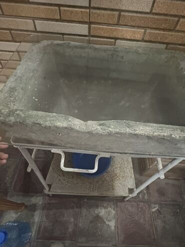 - Üst hissə: qalın betondan tökülmüş dərin leğən (düzbucaqlı forma). Üstünə qoymaq üçün ayrıca şüşə lövhə verilir – istəyə görə örtük və ya iş səthi kimi istifadə oluna bilər.
