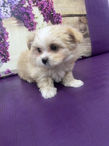 Balaca, krem rəngli tüklü balaca it balası maltipo Yumşaq, sıx və parlaq örtüyü var, qısa pəncələri və xırda, qara burnu ilə çox şirindir. Dəyirmi qulaqlar, böyük qara gözlər və dalğalı tüklü quyru...