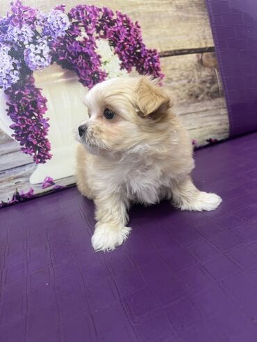 Yumşaq tüklü, kiçik ölçülü dekorativ it balası. Açıq krem/ağ rəngli, qulaqları açıq bej tonludur. Qısa pəncələri və sıx, buruqdursa-bənzər tükləri var. Ev şəraitinə uyğun, mənzildə saxlanılması rah...