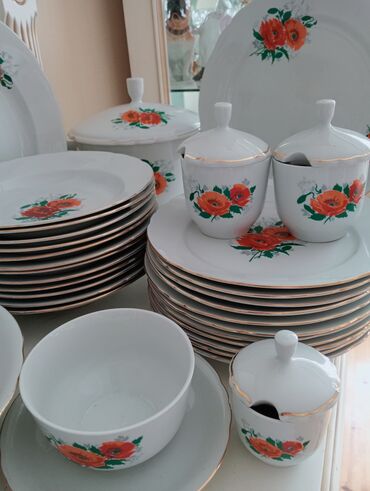 Temiz farfor 6 neferlik 24 parca bosqab desti 120 azn 48 parca 12 neferlik var tezedi islenmeyib karobkasinda Almaniya istehsali temiz farfordu ozum baha almisam tecili satilir