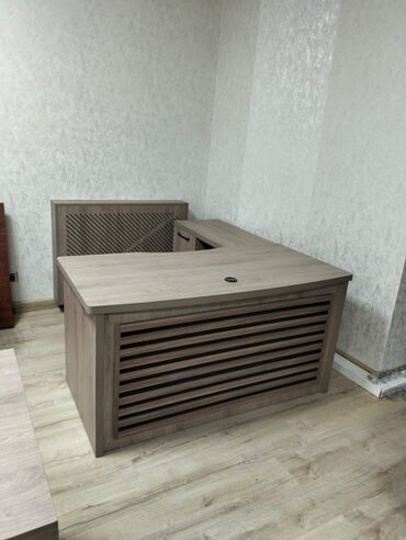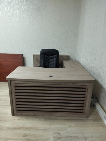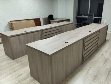 - Komplektdə müxtəlif ölçülü iş masaları və L‑şəkilli rəhbər masası.