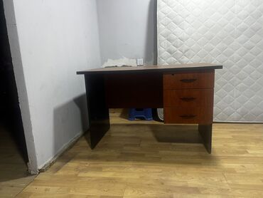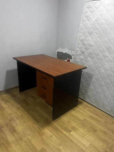 - Material: Ağac teksturalı laminat/MDF - Tip: Ofis/iş masası - Ölçü təxmini: Geniş iş səthi, düzbucaqlı forma - Rəng: Açıq ağac (beji/şam tonları) - Çəkilə bilən siyirmələr: 3 ədəd, metal tutacaql...