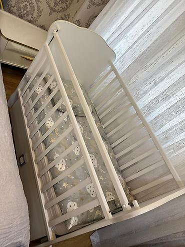 Tahire….Beşik 130 AZN Uşaq beşiyi – ağ rəngdə, klassik relsli dizayn. Xüsusiyyətlər: - Material: ağ rəngli ağac/taxta konstruksiya - Yan tərəflər: təhlükəsizlik üçün sıx yerləşdirilmiş şaquli barəl...