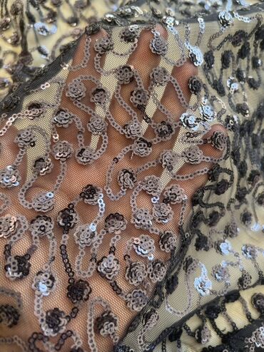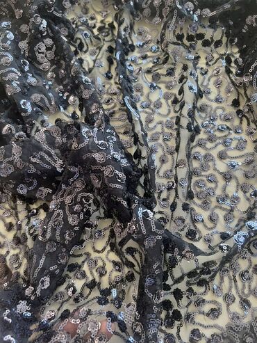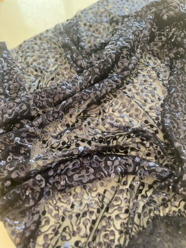 - Material: incə, şəffaf tül əsasında sıx naxışlı payetler tünd göy reng 1m-1:70. 15 m