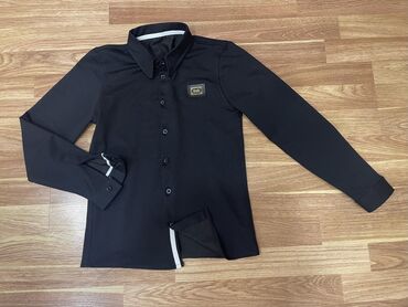 - Qara klassik köynək: Uzunqol, düyməli, sərt yaxalı. Sinədə kiçik loqo paçkası, manjet və ön plaketdə ağ xətt aksenti. Ofis, servis və ya resepsiyon üçün uyğun formal stil.