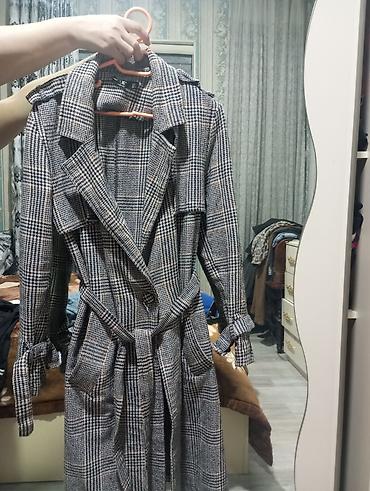 Boz rəngdə uzun trençkot Əla vəziyyətdədir təzədan seçilmir 2-3 dəfə geyinilib. Türkiyədən alınıb. - Material: süni dəriyə bənzər parlaq texture, iç hissəsi astarlıdır - Dizayn: klassik ikiqat düym...