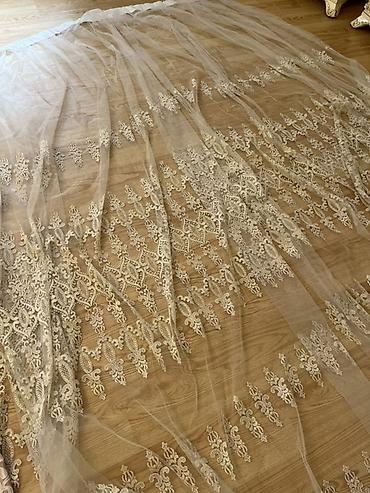 Tül pərdə - Rəng: ağ, şəffaf - Material: incə tül, üzərində zərif naxışlı ipək sapla işlənmiş güllü və həndəsi ornamentlər - Dizayn: alt hissədə sıx naxış zolağı, ara hissələrdə zəncirvari motivlə...
