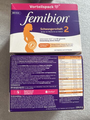 QadınПродам витамины Femibion 2 . Производство Германия 🇩🇪 Покупала себе во время беременности в немецкой аптеке , но использовала только 4 блистера , далее не понадобились в назначении.