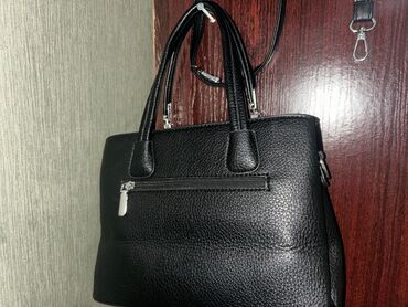 Qadın əl çantası – klassik qara rəngdə, sərt formalı. Üstündə böyük
