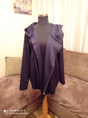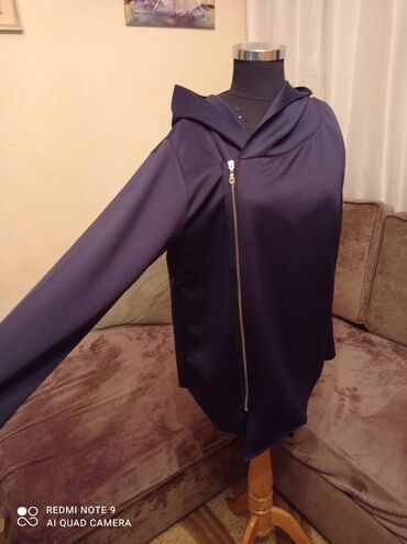 Qadınlar üçün tünd göy rəngli trikotaj sviter-kardiqan. - Model: fermuarlı, ön hissəsi tam açılan - Parça: sıx toxunmuş trikotaj (isti və yumşaq hiss) - Yaxa: iri, qatlanabilən və fermuarla tənzim...
