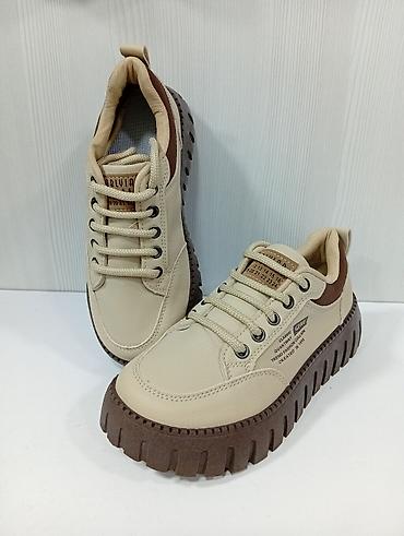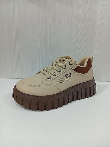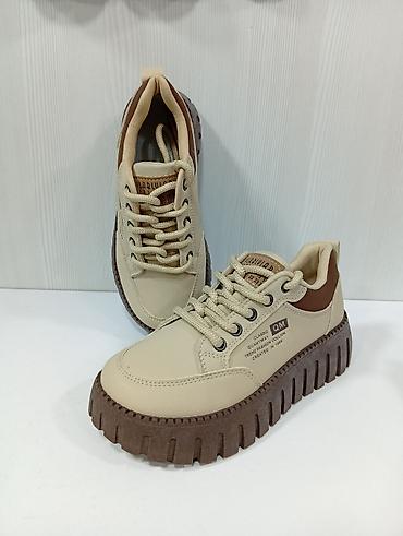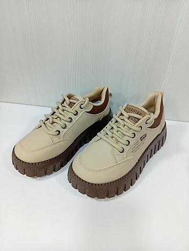 Qadın krossovkası – qalın dişli platforma - Rəng: bej üst hissə
