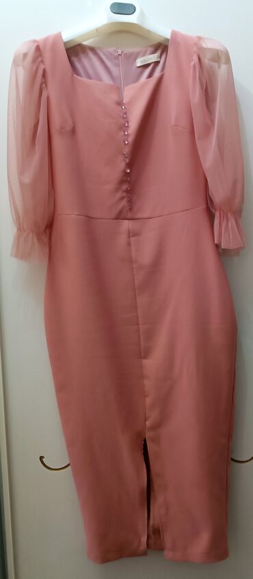 Bej rəngli, kapronlu qısaqollu şıq paltar/şəklinlərinə görə uzun jilet