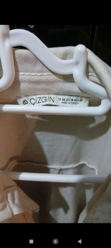 Bej rəngli qısa kardiqan - Model: qalın toxunuşlu, örgülü (zəncirvari) naxışlı, rib toxuma zolaqları - Yaxa: dərin V-yaxa, geniş və rahat - Bağlanma: ön hissədə 5 ədəd qəhvəyi düymə - Qol: enli, d...