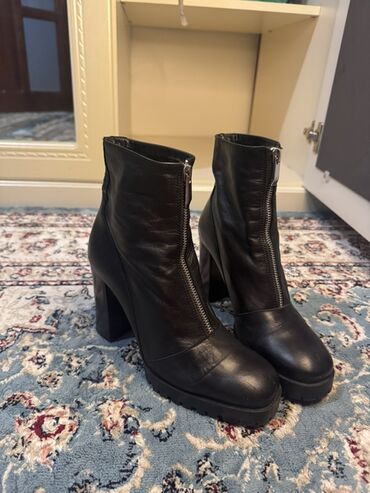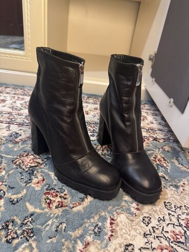 Qadınlar üçün qara dəri bot(1defe geyinilib 40razmer) - Model: bilek boyu klassik bot - Rəng: qara - Material: hamar dəri (parlaq olmayan) - Burun forması: yüngül sivri/oval - Daban: hündür blok d...