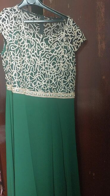 40 razmer Zümrüd-yaşıl rəngdə, uzun ziyafət/libas. Üst hissəsi V
