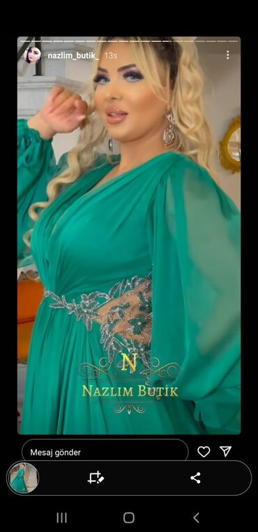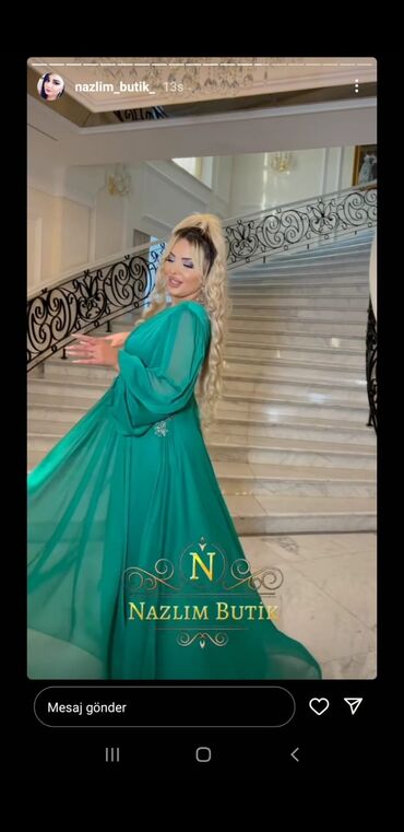 Zümrüd-yaşıl rəngdə eleqant ziyafət/gecə libası. Baha alınıb 100 azn