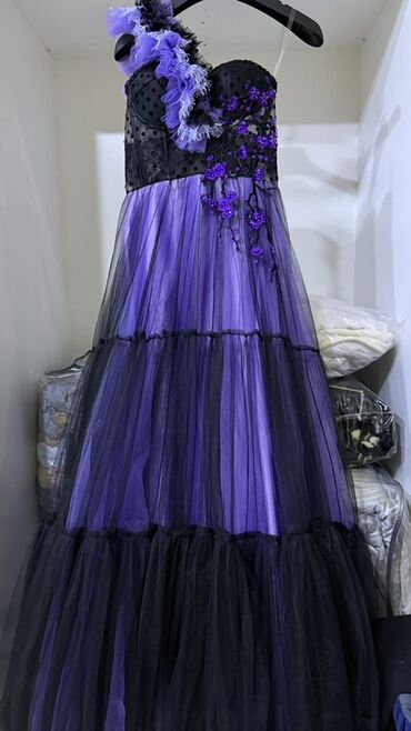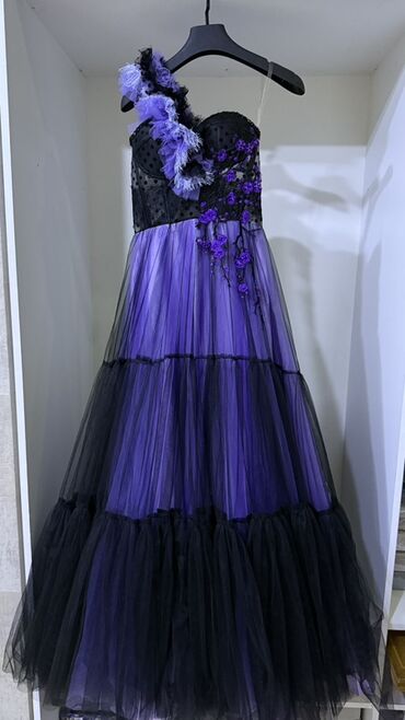 Bənövşəyi-qara rəng palitrasında gecə/ziyəfət paltarı.