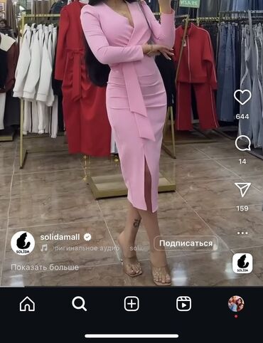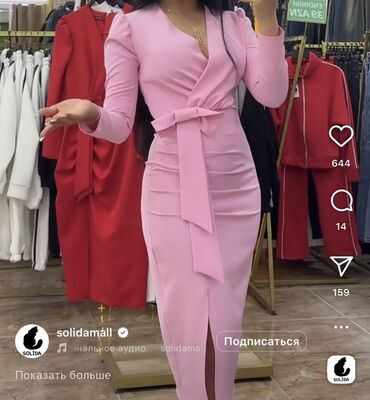 Çəhrayı rəngli, uzunqol, dizə qədər uzanan bu ziyafət donu, V formalı yaxalıq və bel hissəsində lentlə bəzədilmişdir. Ön tərəfindəki yarıq detallı ətəyi ilə zərif bir görünüş təqdim edir. Bədənə oturan kəsimi ilə fiquru vurğulayır və xüsusi tədbirlər üçün uyğundur.