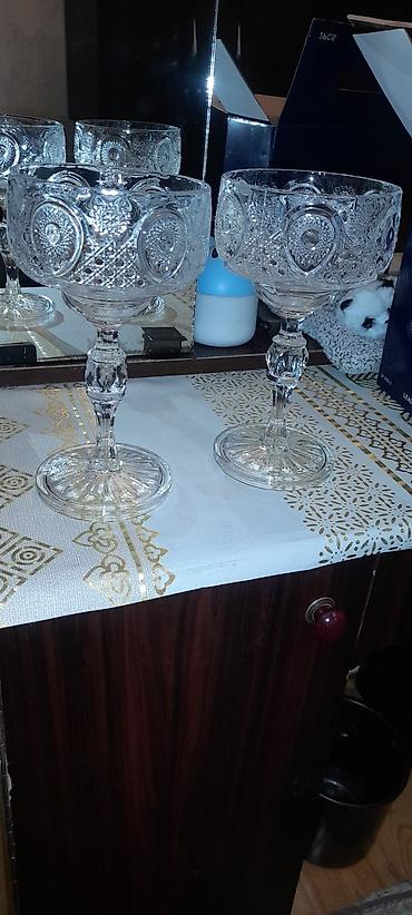 6 ədəd kəsimli şüşə qədəh dəsti - Material: xurustal - Dizayn: klassik geometrik naxışlar, saplı-stəkanlı forma, şüalı dib naxışı - Ölçü: likör/aperitiv üçün kiçik həcmli (şot və ya desert şərabı...