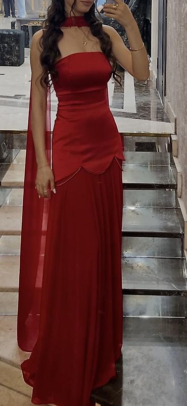 • Qırmızı rəngli, uzun ziyafət/gecə geyimi.Razmer XS/S.1defe geyilib -