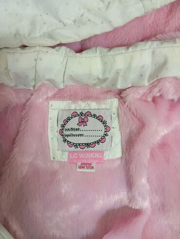 LC Waikiki uşaq kurtkası və qız uşağı üçün şalvar dəsti - Marka: LC Waikiki (kurtka) - Rəng: ağ, quilted/naxışlı tikişli - Model: düyməli (snaps), orta uzunluq, düz yaxalı, çıxarıla bilən kapüşonl...