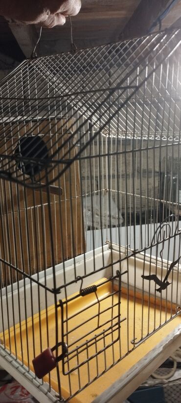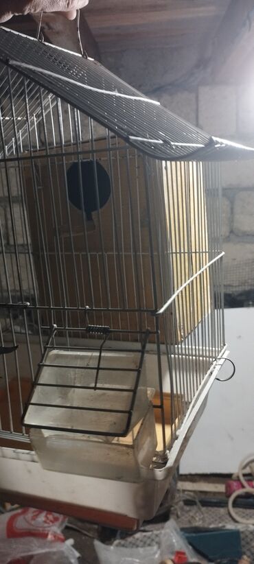 Quş qəfəsi - Material: metal barmaqlıqlar, plastik altlıq və tepsi -