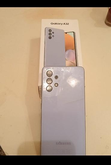 Samsung Galaxy A32 – bənövşəyi rəng telefon 6ildir mendedi zavod telefondu arxasinda yungul cati var real alicilar narahat etsin 64gb 4ram barter iphone 8 var real alicilara endirim olacaq