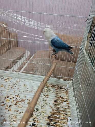 3 məhəbbət quşu,2 erkək 1 dişi 2 qefesle,aksesuarlarlar,yemle birge verilir
