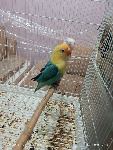 Sevda tutuquşuları cütü (Lovebird).Yuva qızdırırlar.Ünvan Razin.Qəfəssiz satılır.Qəfəs,yuva əlavə 30 AZN.Qəfəs 50 AZN-likdi.Nerazluçnik.Real alıcıya endirim olacaq....
