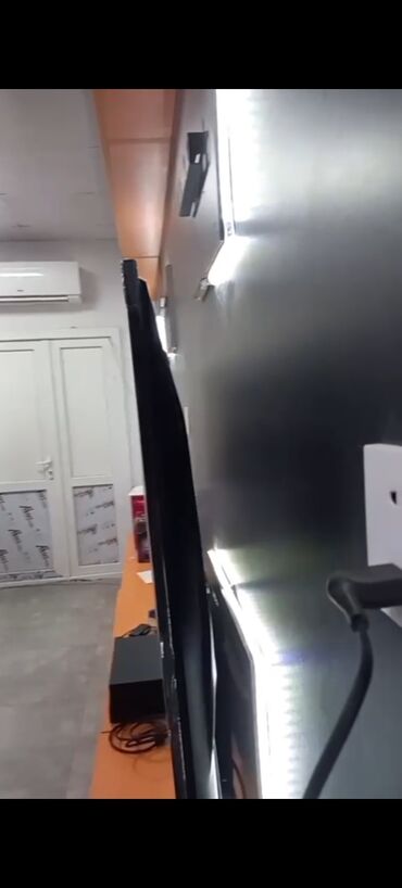 Az işlənmiş ,plyonka üzərində LED televizor, divara quraşdırılmış. Geniş ekranlı model, 107 diaqonal.İnce çərçivə dizaynı, qara ekran paneli. Sol kənarda funksional nişanlar mövcuddur: USB, HDMI, V...