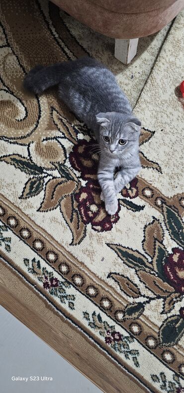 Scottish fold miks Xüsusiyyətlər: - Yaş: baladır (yeni doğulmuşdan bir qədər böyük) - Rəng: ağ-boz-qara qarışıq, pəncələri və sinəsi ağ - Qulaqlar yumuşaq aşağı əyimli, gözləri iri və mavi-boz t...