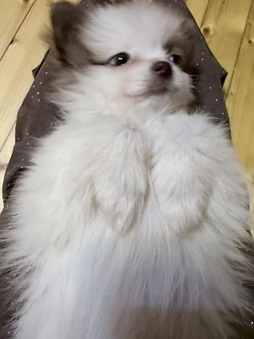 Pomeranian tipli kiçik ölçülü dekorativ it balası - Rəng: qar kimi ağ, qulaqlarında açıq krem tonları - Örtük: sıx və yumşaq, uzun tüklü, şirni “boo” görünüşü - Gözlər: iri və tünd - Qulaqlar: dik...