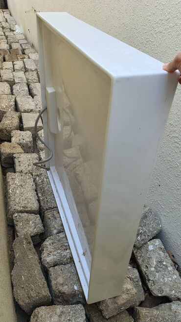 - Alt vanna/tray: ağ akril baza, sifon çıxışı və kabel keçiricisi olan blok