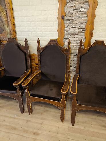 - Rəng və üslub: tünd qəhvəyi rustik/klassik dizayn, yüksək arxa hissə ilə “taxtvari” forma