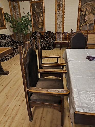 Taxta çərçivəli yumşaq oturacaqlı stulları dəst halında təqdim olunur. - Rəng: tünd qəhvəyi karkas, boz-bej parça oturacaq və arxalıq - Material: möhkəm taxta konstruksiya, yumşaq süngər doldurulm...