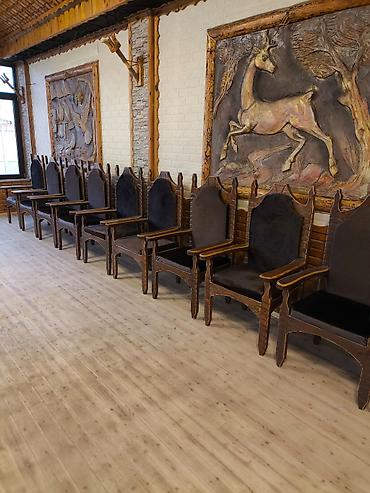 Mebel: Klassik dizaynlı taxta stol/stul - Model: Yüksək bel, oyma başlıq və düyməli (kapitone) arxa hissə - Material: Taxta karkas, yumşaq oturacaq və arxa hissə - Rəng: Seçim mümkündür - Üslub: K...