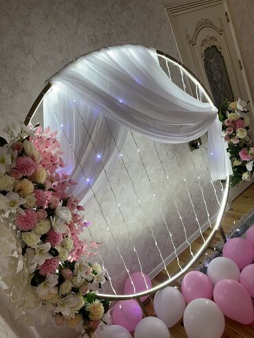 Tədbir bəzədilməsi və dekor konstruksiyaları - Səhnə, giriş və fotozona üçün peşəkar dekor: iri ölçülü çiçək kompozisiyaları, LED işıqlı tül çiçəklər, parlaq qanadlı elementlər, halqavari/arx kons...