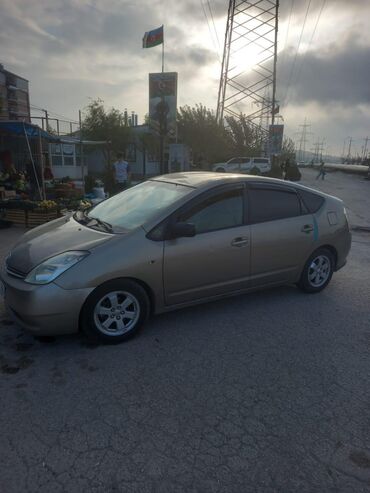 Toyota Prius (2-ci nəsil) hibrid hatchback - Hibrid benzin-elektrik güc aqreqatı – şəhər rejimində az yanacaq sərfiyyatı - Aerodinamik kuzov, bej-metal rəng - Qara rəngli yüngül lehimli disklər, a...